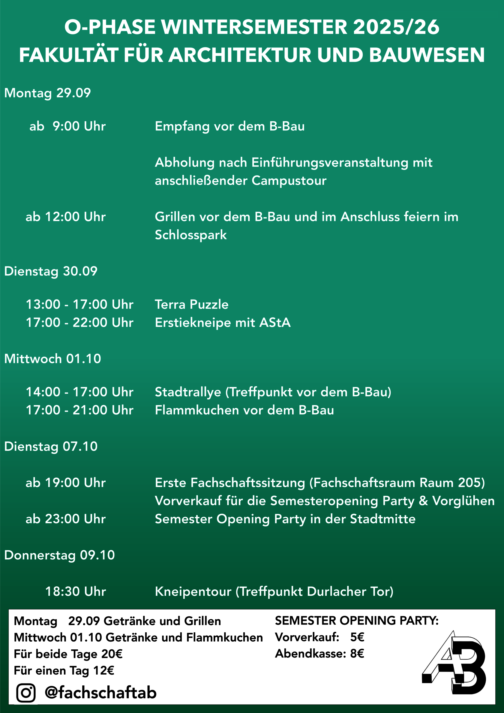 Für weitere Infos und aktuellere Updates schaut gerne auf unserem Instagram @FachschaftAB vorbei!