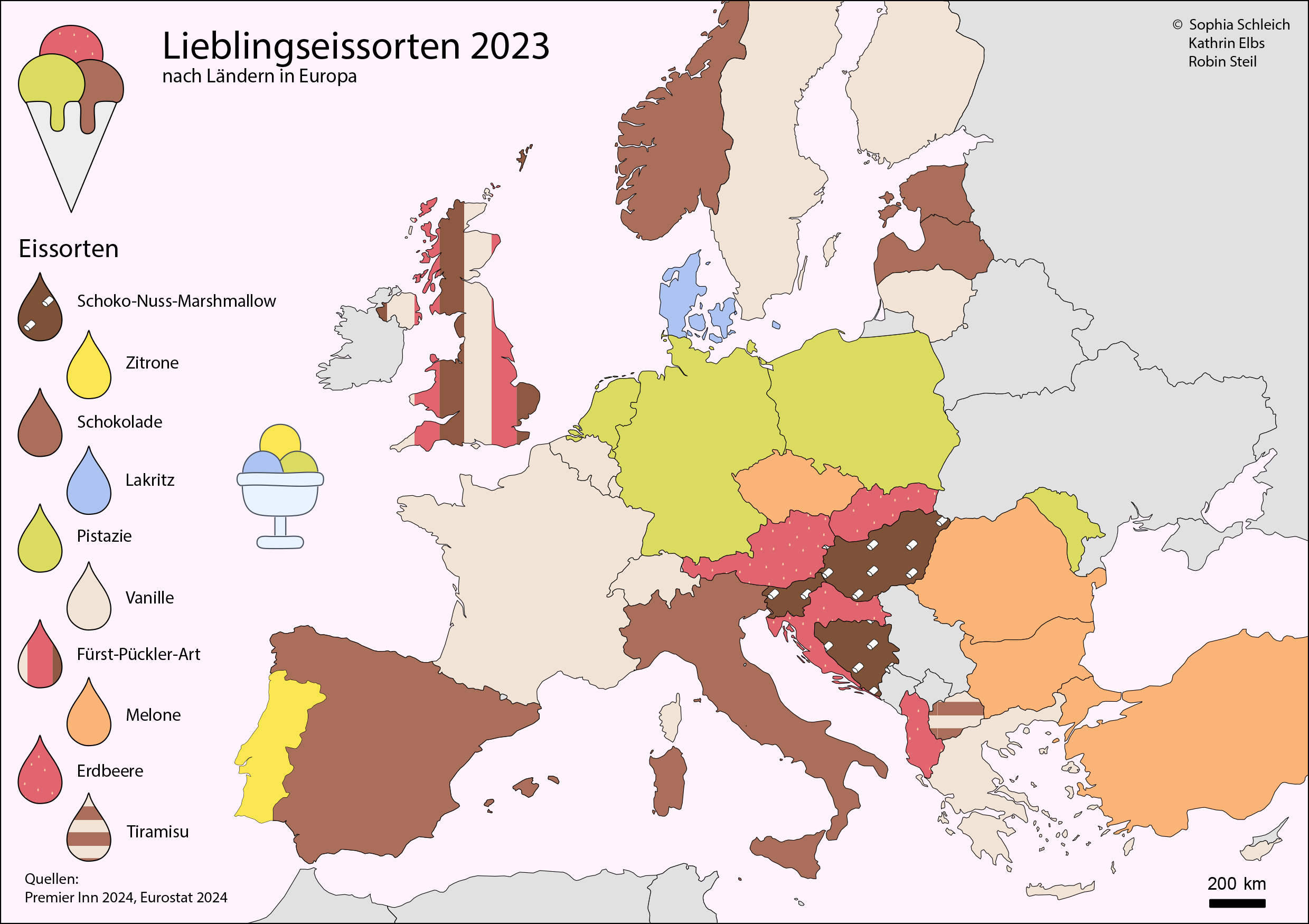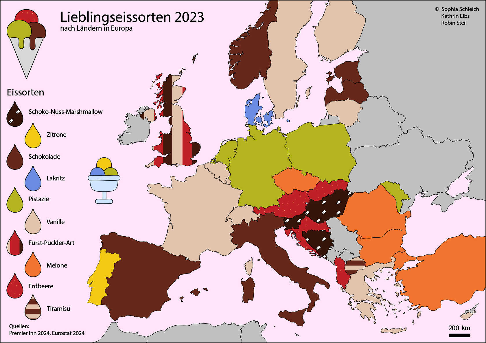Denkbar wäre, dass der um die Dubai-Schokolade herum entstandene Pistazienhype Einfluss genommen hat. Wobei die landesspezifische Lieblingssorte das insgesamt verkaufte Eisvolumen wohl kaum beeinflusst – hier bleibt wahrscheinlich das Marketing durch die jeweiligen Hersteller der entscheidende Faktor.