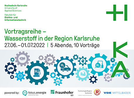 Die Fakultät für Elektro- und Informationstechnik an der HKA bietet im Rahmen der Woche des Wasserstoffs Süd in Kooperation mit Fokus.Energie, Fraunhofer-Institut für Chemische Technologie ICT, TechnologieRegion Karlsruhe sowie VDE Mittelbaden eine Live-Vortragsreihe über fünf Tage an, in der insgesamt zehn Vorträge die Faktoren Politik, Forschung, Energieproduktion und industrielle Anwendung beleuchten.