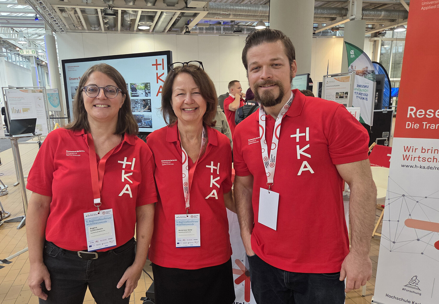 Am Stand der HKA wurden Realexperimente präsentiert, die gemeinsam mit Kommunen und Unternehmen umgesetzt wurden. Die Besucher:innen konnten eine „Journey“ durch verschiedene Stationen einer Zusammenarbeit mit der HKA erleben und erfahren, wie wissenschaftliche Expertise gezielt auf regionale Herausforderungen angewandt werden kann. Die Resonanz war durchweg positiv – viele neue Kontakte und Impulse für künftige Kooperationen, wie bspw. im Bereich der Bauleitplanung oder Verkehrsverteilung entstanden direkt vor Ort.