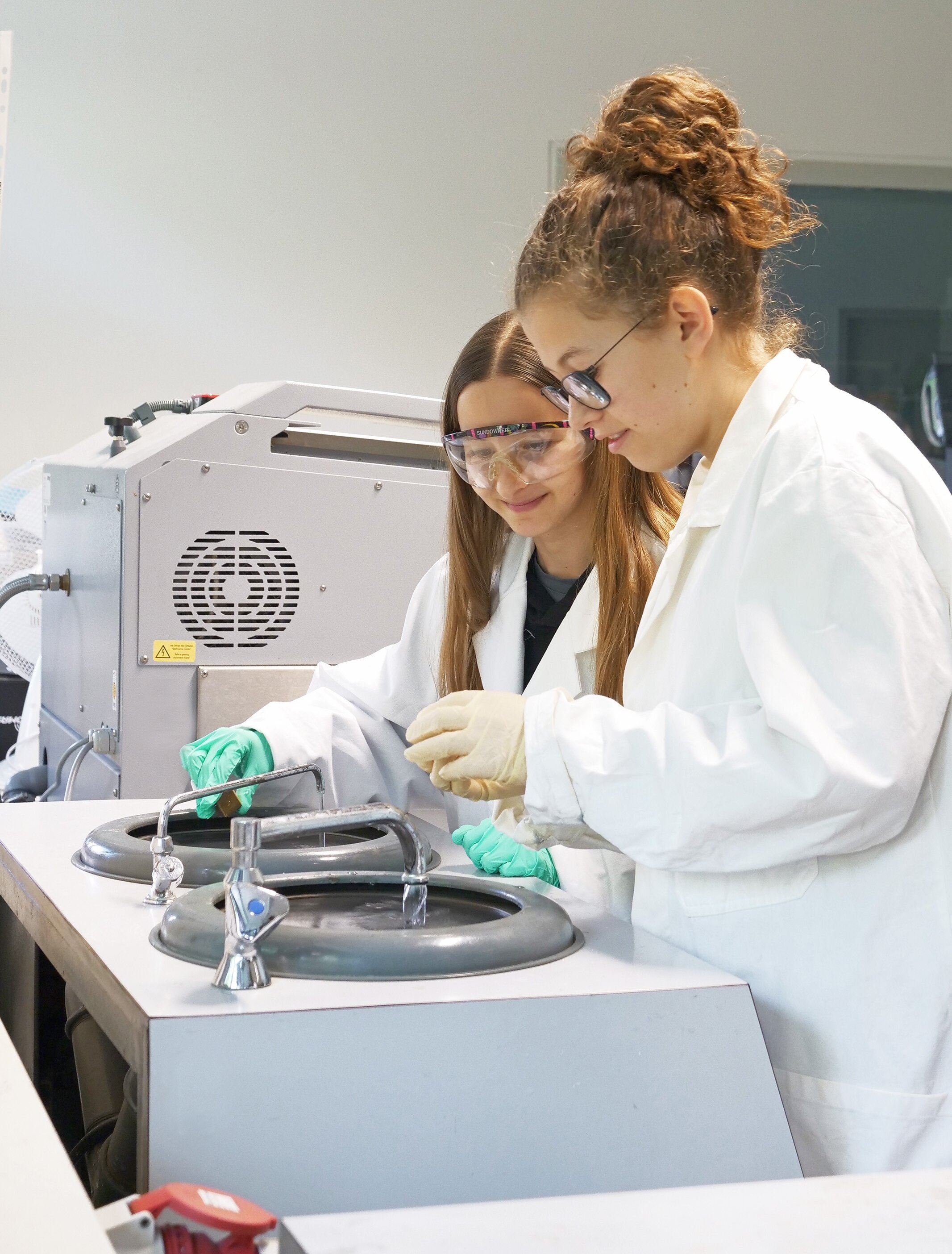 Mit beiden Beinen fest auf dem Boden, aber im Reich der Extreme, bewegte sich ein anderer Workshop: In der Metallografie schauten die Teilnehmerinnen Metallen „ins Innere“. Nach Schleifen und Polieren untersuchten die Schülerinnen ihre Proben unter dem Mikroskop. Spektakulär wurde es, als sie ihre Metalle auf rund minus 180 Grad abkühlten: Zerbrechen sie wie Glas oder bleiben sie stabil? Das Ergebnis war weniger wichtig als die Erkenntnis, dass Materialeigenschaften präzise untersucht und nicht nur vermutet werden.