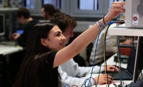Das Labor Grundlagen Elektrotechnik im ersten Semester des gleichnamigen Bachelorstudiengangs ist eine wichtige Grundlage dafür, gleich von Anfang an Theorie und Praxis zu vereinen. Im Video stellen wir das Labor vor.
