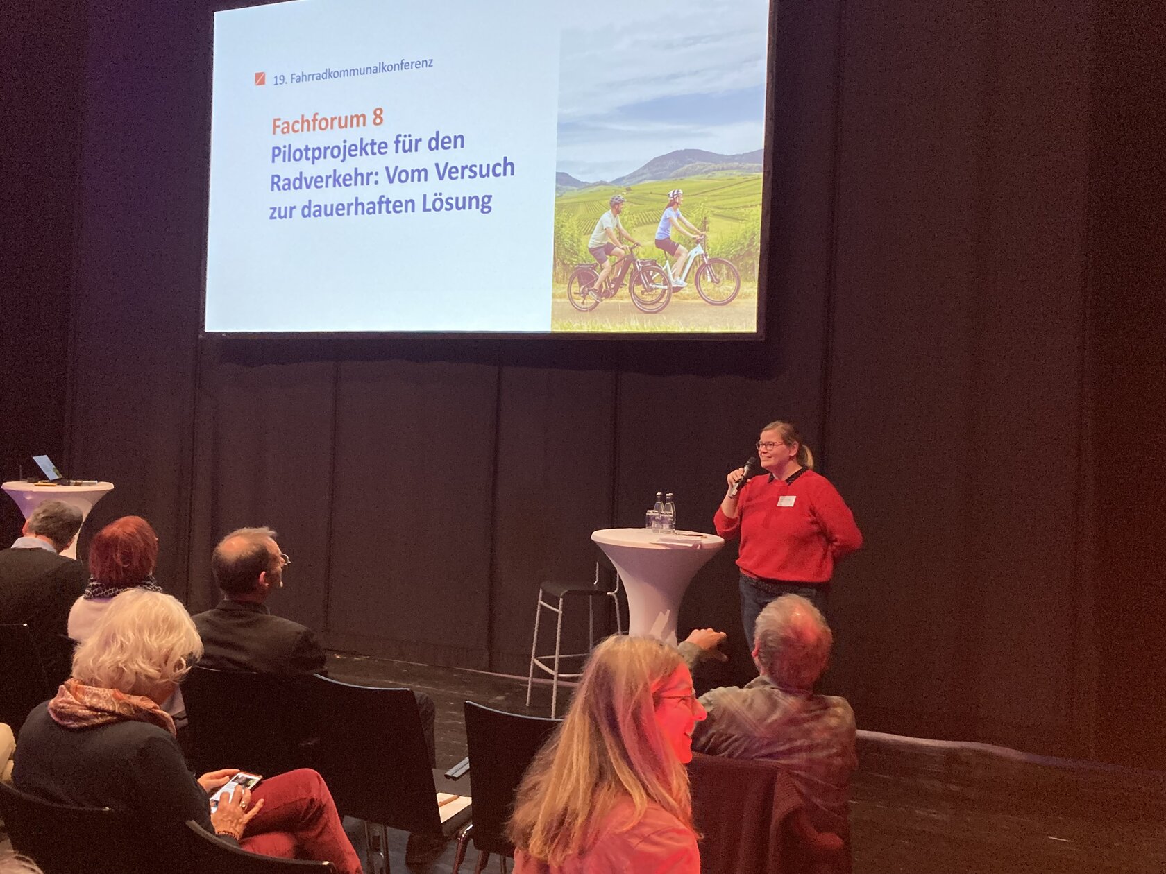 Participation and involvement in the Municipal Cycling Conference: Claudia Hille and Uta Burghard took part in the “Fahrradkommunalkonferenz” (Municipal Cycling Conference) in Landau on 11 and 12 November 2025, organised by the Federal Office for Logistics and Mobility (BALM) and the city of Landau. The Municipal Cycling Conference is sponsored by the Federal Ministry of Transport (BMV) and is considered the most important cycling conference at the municipal level. It is the central platform for those responsible for cycling in public administrations. Claudia Hille moderated Expert Forum 8: ‘Pilot projects for cycling: from trial to permanent solution’ and Uta Burghard moderated Expert Forum 1: ‘Safe cycle paths in urban areas: how to create continuous cycling networks’. Details of the Municipal Cycling Conference