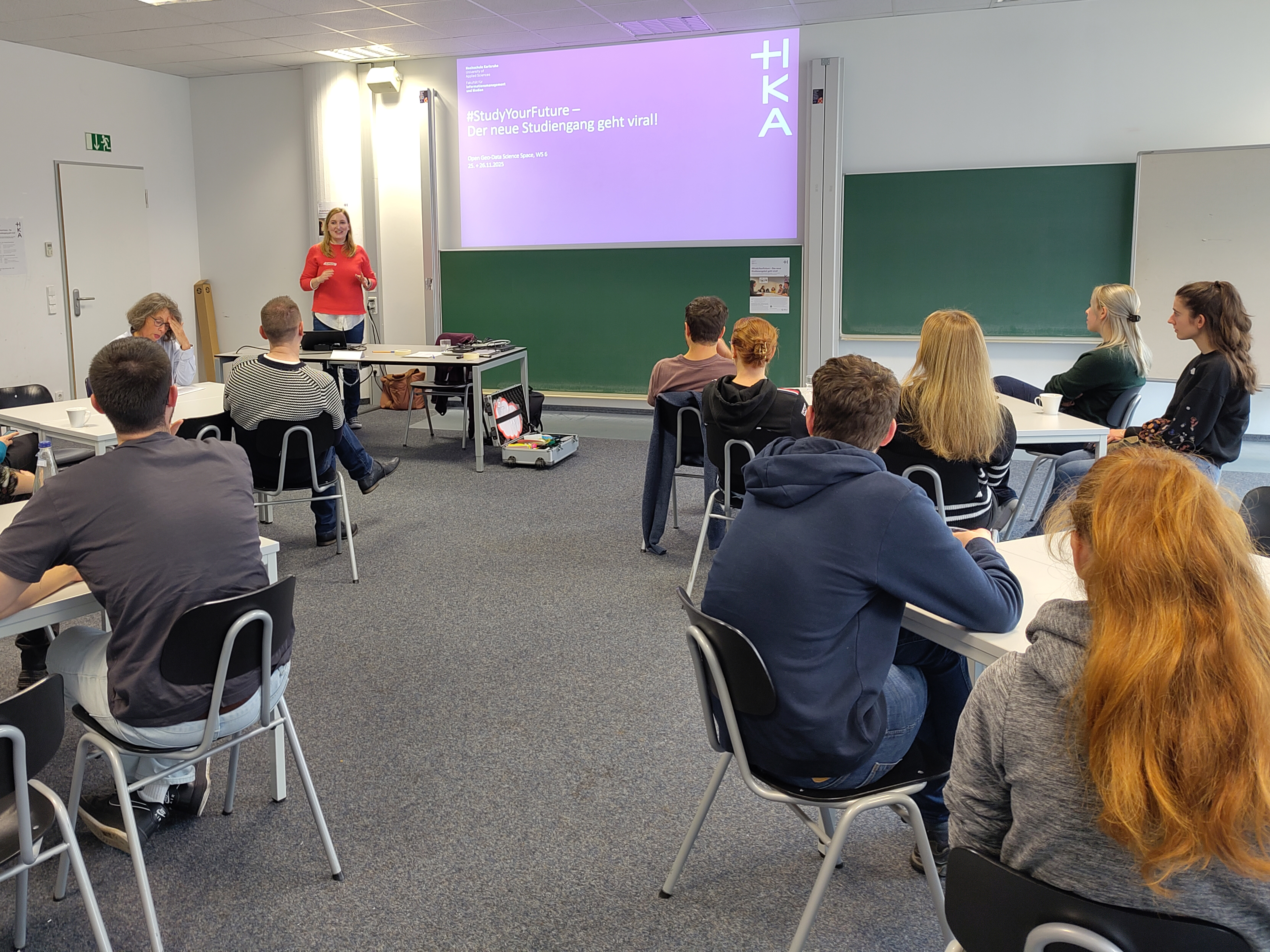 Dies an zwei aufeinanderfolgenden Nachmittagen (25. und 26. Nov. 2025) mit insgesamt 18 Teilnehmern, dies noch bunter als sonst, weil auch einzelne Studierende der Studiengänge Informationsdesign sowie Kommunikation und Medienmanagement mit dabei waren. Nach einer kurzen Einführung in das Projekt für die neu Dazugestoßenen und einer Zusammenfassung, was wir im vorherigen Workshop erarbeitet hatten, übernahm Frau Carolin Render, die Referentin für Öffentlichkeitsarbeit an der Fakultät IMM.