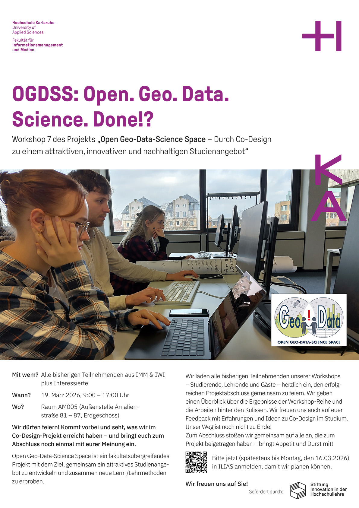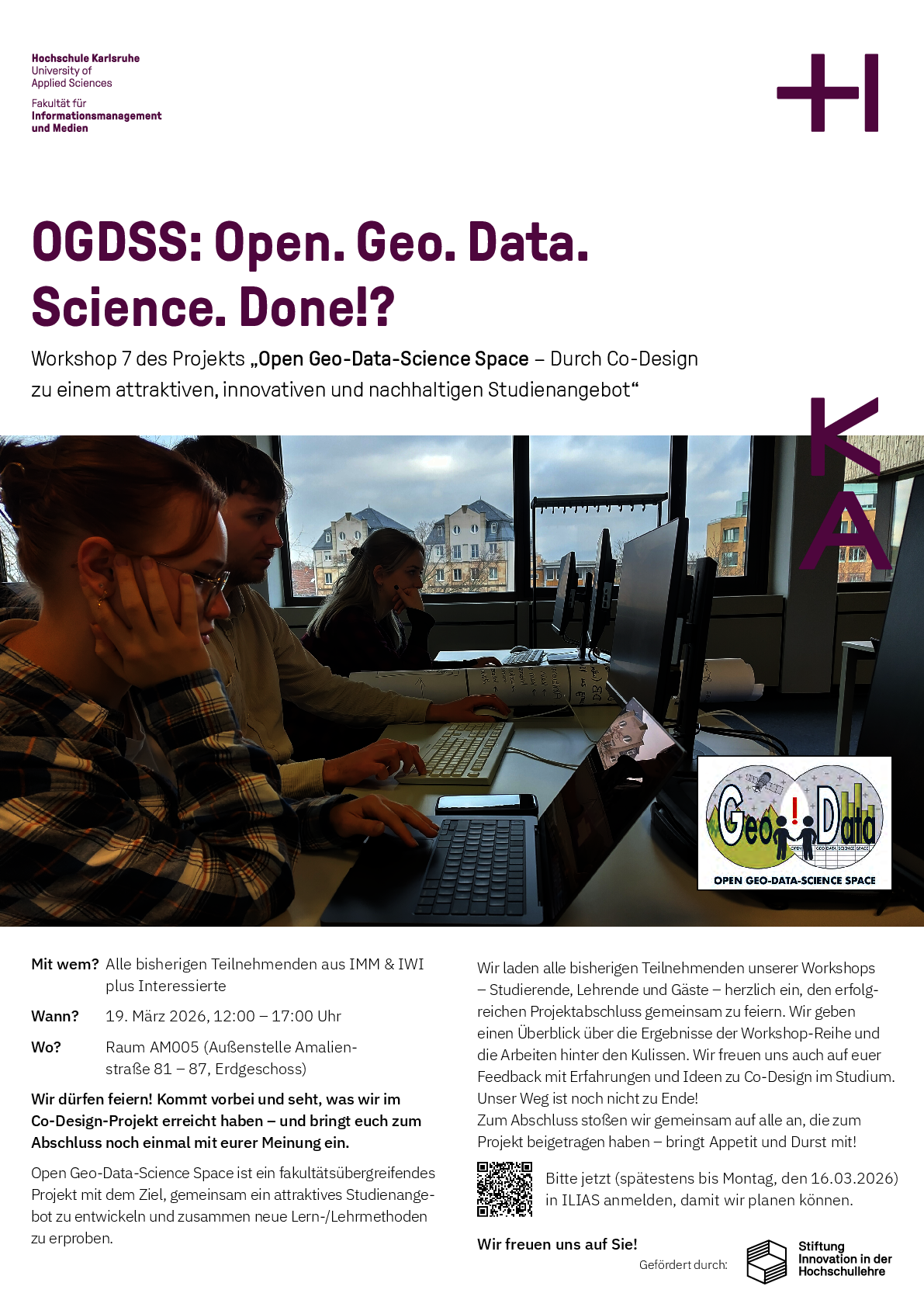 Bitte jetzt (spätestens bis Montag, den 16.03.2026) in ILIAS anmelden, damit wir planen können.