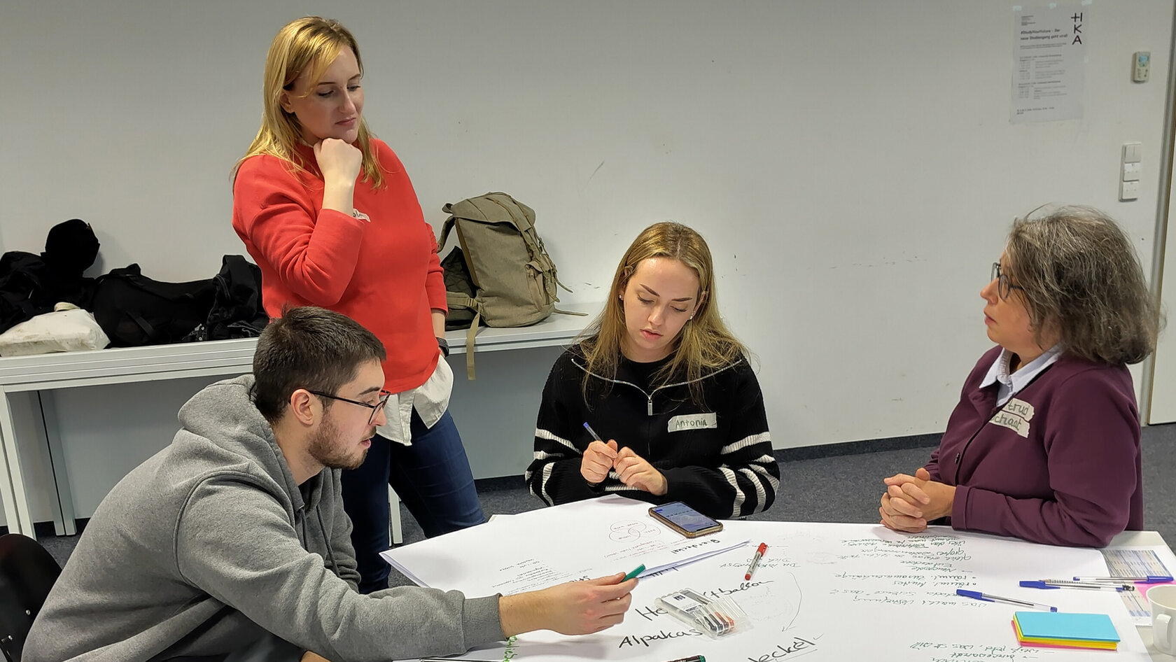 Der erste Nachmittag stand ganz im Zeichen des Ideenfindungsprozesses. In vier gemischten Gruppen – jeweils einem bestimmten Medientyp zugeordnet – entwickelten die Teilnehmer mit viel Engagement und Spaß ihre Konzepte. Am Ende des Tages war an jedem Tisch ein konkreter Plan entstanden, der die Grundlage für die weitere Ausarbeitung am nächsten Tag bildete.