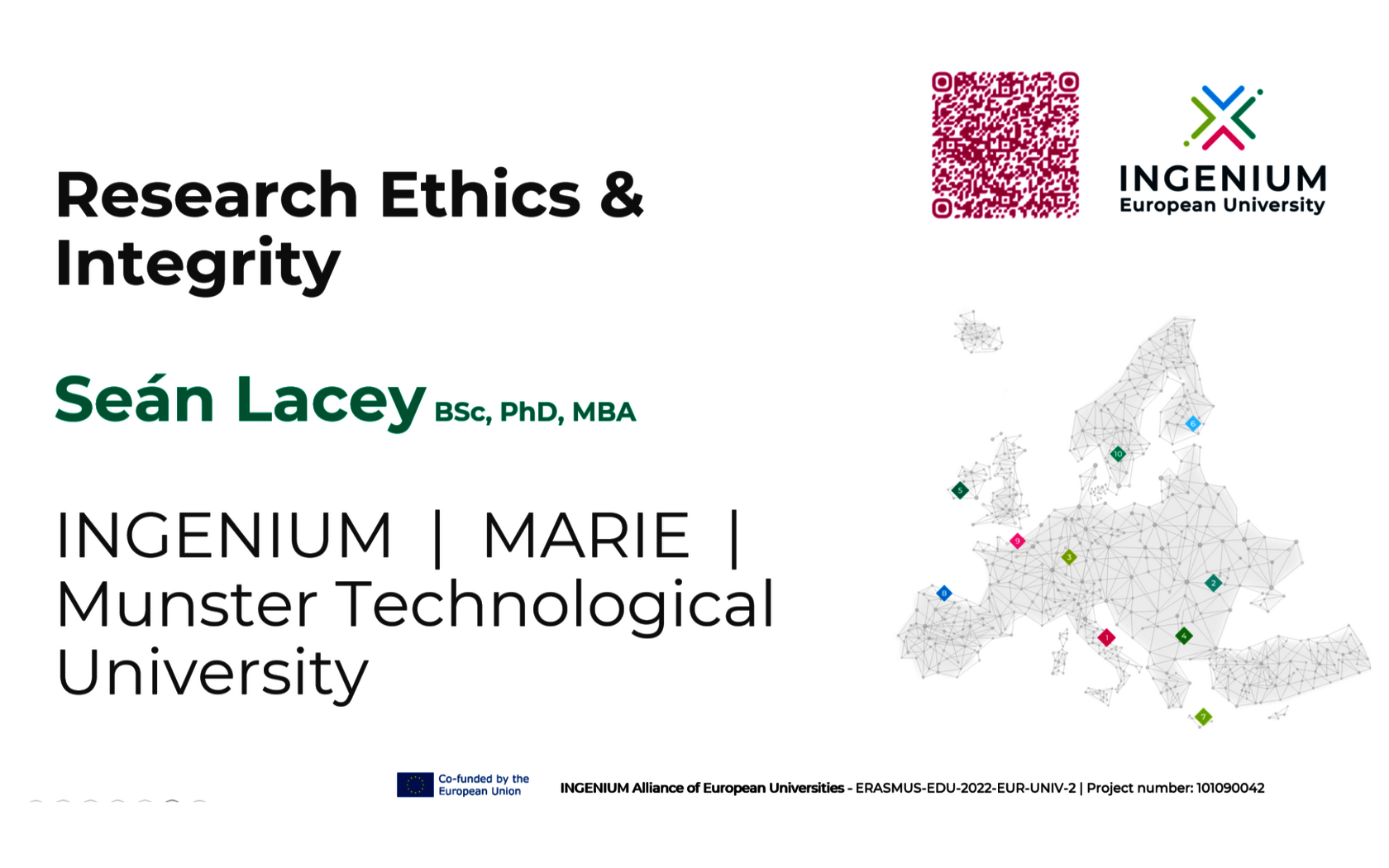 Geleitet wird das Modul von Dr. Seán Lacey, Research Integrity & Compliance Officer an der Munster Technological University und Principal Investigator des Projekts MARIE – Multidisciplinary Approach to Research Integrity & Ethics, einem INGENIUM-Projekt, das vom INGENIUM Research School Board unterstützt wird.