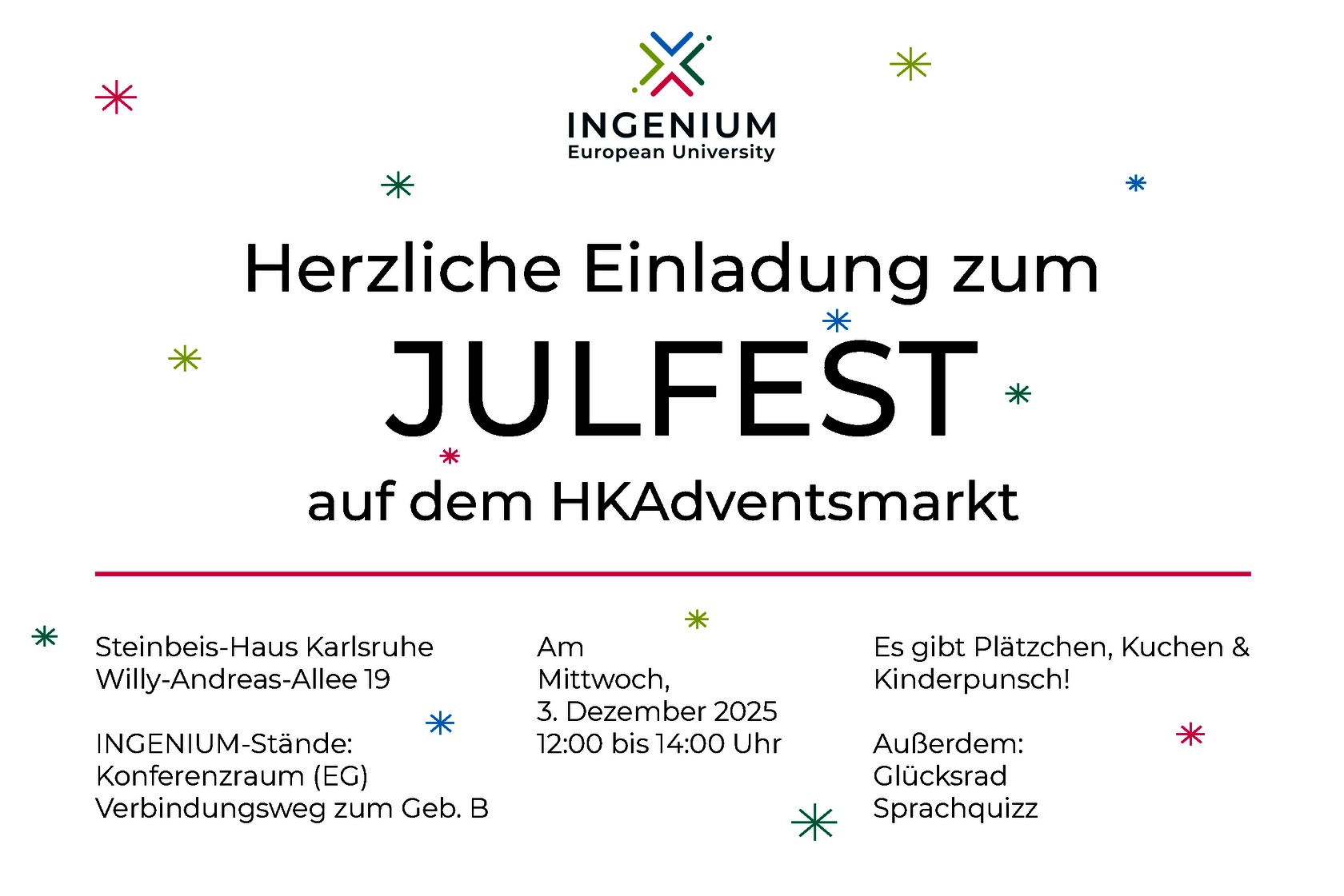 Im Rahmen des HKAdventsmarkts am 3. Dezember feiern wir auch das INGENIUM-Julfest und möchten Sie dazu herzlich einladen.
