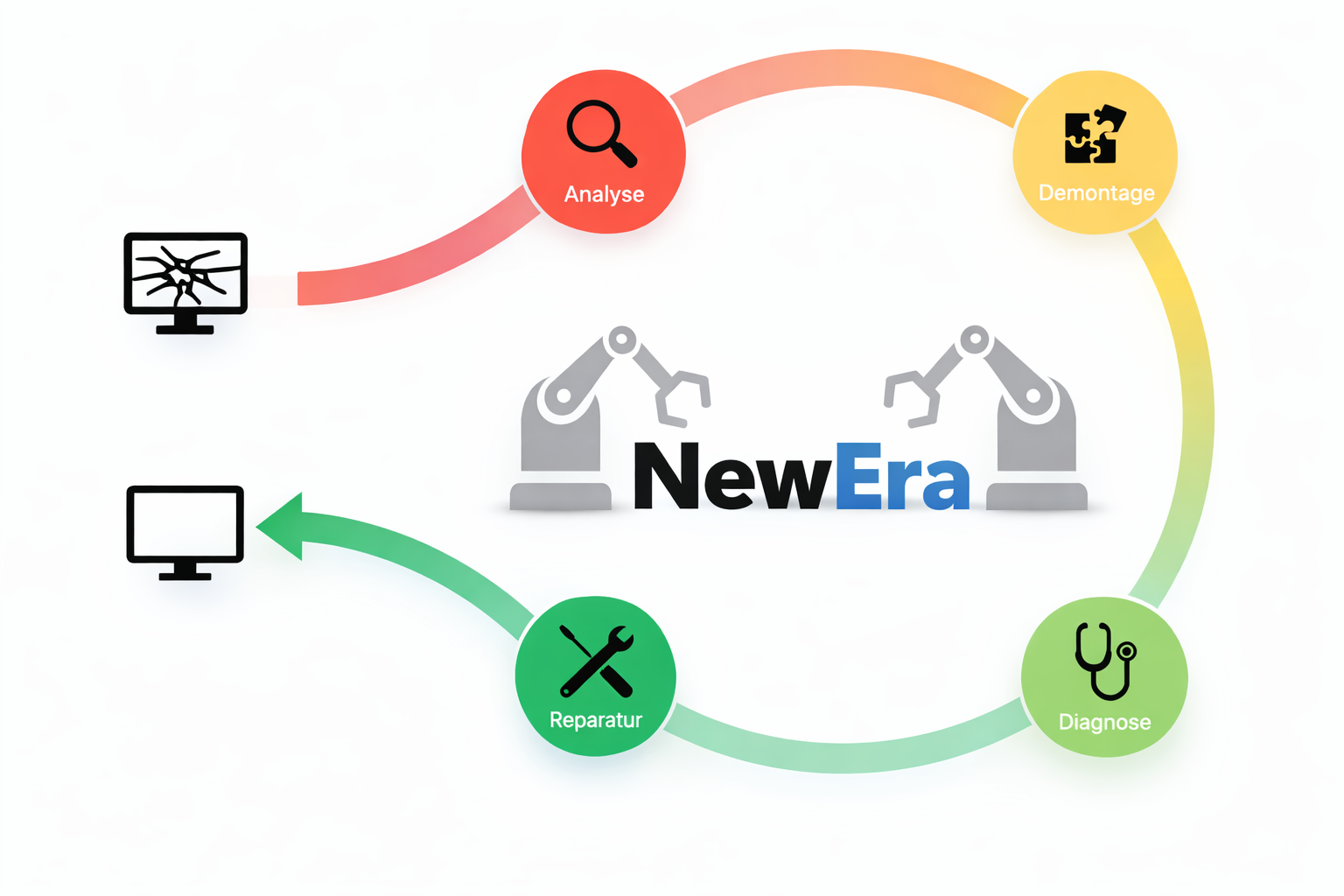 Angesichts des steigenden Bedarfs an Elektronik, der zunehmenden Menge an Elektroschrott sowie der Tatsache, dass viele Rohstoffe knapp und nur mit hohem Aufwand zu gewinnen sind, wird die zirkuläre Kreislaufwirtschaft immer bedeutender. Trotzdem werden die wenigsten Elektrogeräte repariert, obwohl oft einfache Defekte zugrunde liegen. Einerseits sind Reparaturen oft unwirtschaftlich, da Arbeits- und Ersatzteilkosten den Gerätewert übersteigen. Andererseits fehlt aufgrund des demografischen Wandels zunehmend qualifiziertes Fachpersonal. Ziel dieses Vorhabens ist daher die Entwicklung einer Methodik zur automatisierten Reparatur von Elektrogeräten sowie deren prototypische Umsetzung in einem Technologiedemonstrator. Hierfür wird ein Dual-Arm-Manipulator mit KI-gestützter Fehlerdiagnose und adaptiven Greifsystemen zur flexiblen De-/montage- und Reparatursequenzplanung eingesetzt. Zusätzlich entsteht eine skalierbare Reparaturdatenbank, die Expertenwissen strukturiert abbildet. Der Demonstrator soll abschließend alle wesentlichen Prozessschritte zeigen und bietet somit die Grundlage für die zukünftige Etablierung von automatisierten Reparaturlösungen.