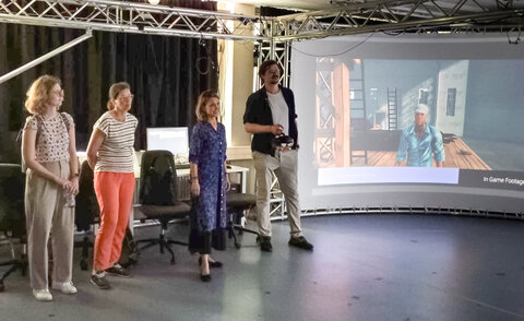 Vor etwas mehr als einem Jahr, im Februar 2023, startete die Kooperation des Instituts für Intelligente Interaktion und Immersive Erfahrung (IIIX) mit der Verwaltungs-Berufsgenossenschaft (VBG). Ziel des Projektes war es, aufzuzeigen, wie Studieren in der Zukunft aussehen könnte. Dafür war die VBG im Sommer 2023 mit einem Filmteam zu Besuch am IIIX.