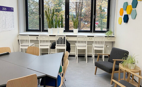 Für alle IWI-Studierenden: der neue IWI-Study-Space in E012. Ein Lernraum von Studierenden für Studierende, gesponsert vom Freundeskreis Wirtschaftsinformatik.