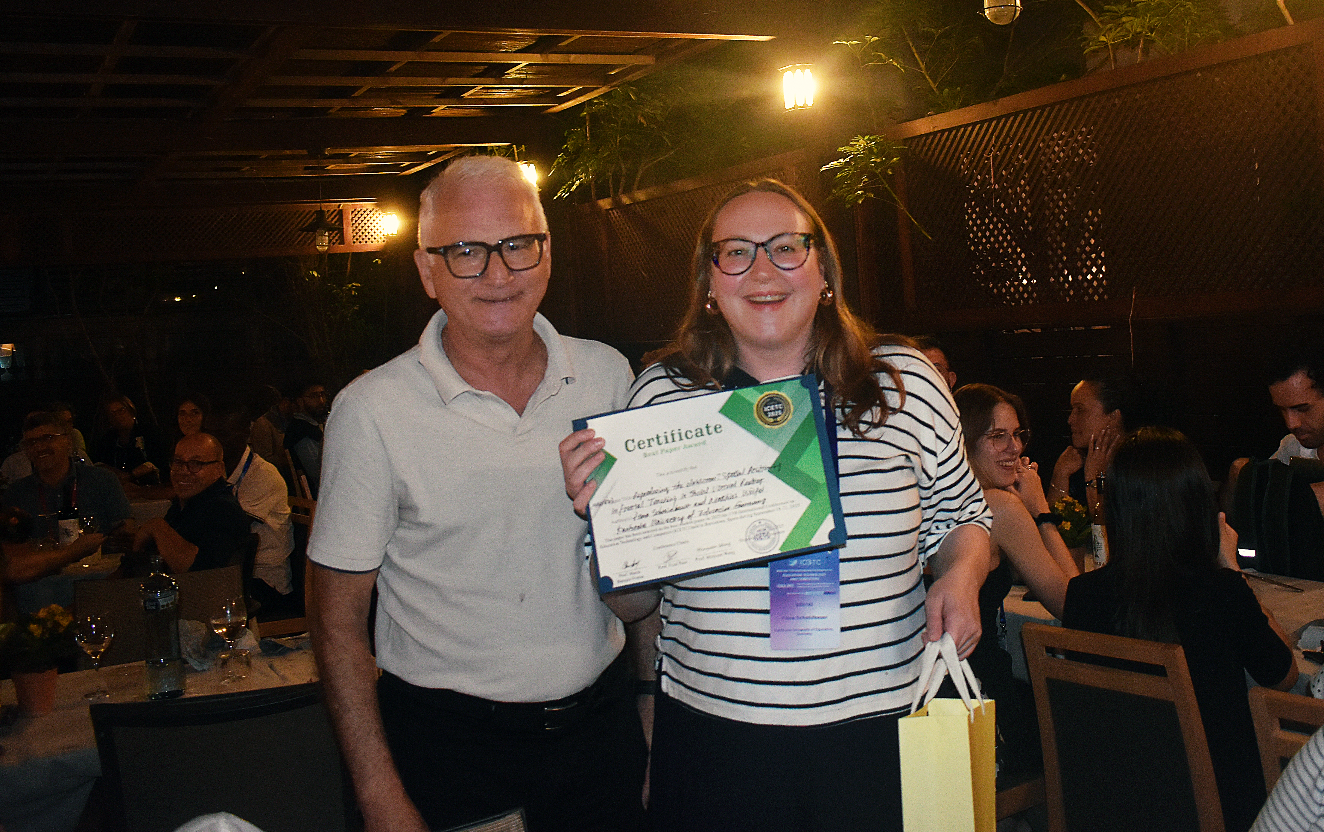 Fiona Schmidbauer stellte ihre qualitative Langzeitstudie zur räumlichen Positionierung von Studierenden und Lehrenden im virtuellen Lernraum vor. In ihrer Videografie, die sie über mehrere Semester hinweg im VR Campus durchgeführt hat, vergleicht sie Raumpraktiken in Virtual Reality (VR) mit denen im physischen Hörsaal – etwa, wie Nähe und Distanz entstehen, wie sich Lehrende und Studierende im Raum positionieren und welche Rolle räumliche Orientierung für soziale Aspekte des Lernens spielt. Für ihren Beitrag wurde sie mit dem Best Student Paper Award ausgezeichnet, eine besondere Anerkennung ihrer wissenschaftlichen Arbeit, die sie gemeinsam mit Co-Autor Matthias Wölfel erarbeitet hat.