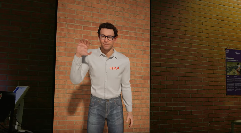 Das Highlight des IIIX-Messeauftritts war der Embodied Conversational Agent, ein interaktiver virtueller lebensgroßer Gesprächspartner, der auf einem großen Monitor präsentiert wurde. Der Agent verarbeitet in Echtzeit gesprochene oder eingegebene Sprache und antwortet mit natürlicher Stimme, sowie passenden Gesten und Gesichtsausdrücken.