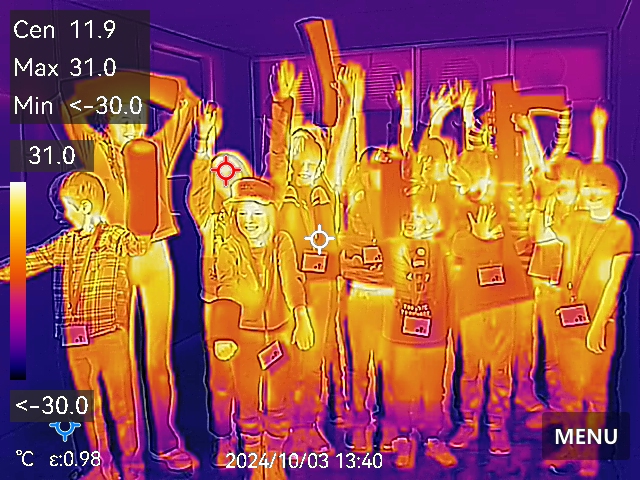 Darauf folgte ein kleiner Exkurs in die Antarktis. Die Kinder erfuhren, wie Pinguine bei extremen Temperaturen überleben und wie Isolierung an kältetechnischen Anlagen am Institut für Kälte-, Klima- und Umwelttechnik (IKKU) funktioniert. Anschließend konnten sie selbst in der Umweltsimulationskammer -30 Grad Celsius erleben und die Isolierungsstrategien testen. Mithilfe einer Wärmebildkamera wurde dieser besondere Moment dokumentiert.
